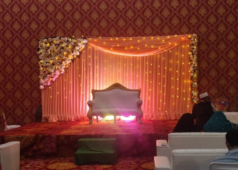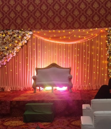 We provide wedding mandaps, stage decor, lighting, furniture, and party setups.